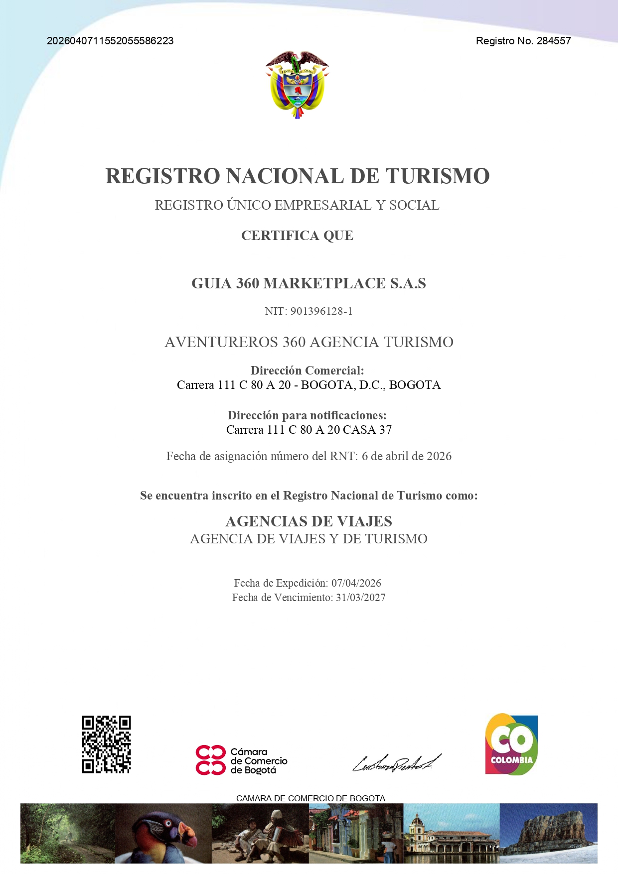 En Aventureros 360 cumplimos con todas las regulaciones legales para operar como agencia de viajes formalmente constituida en Colombia. Aquí puedes consultar nuestros documentos oficiales actualizados.