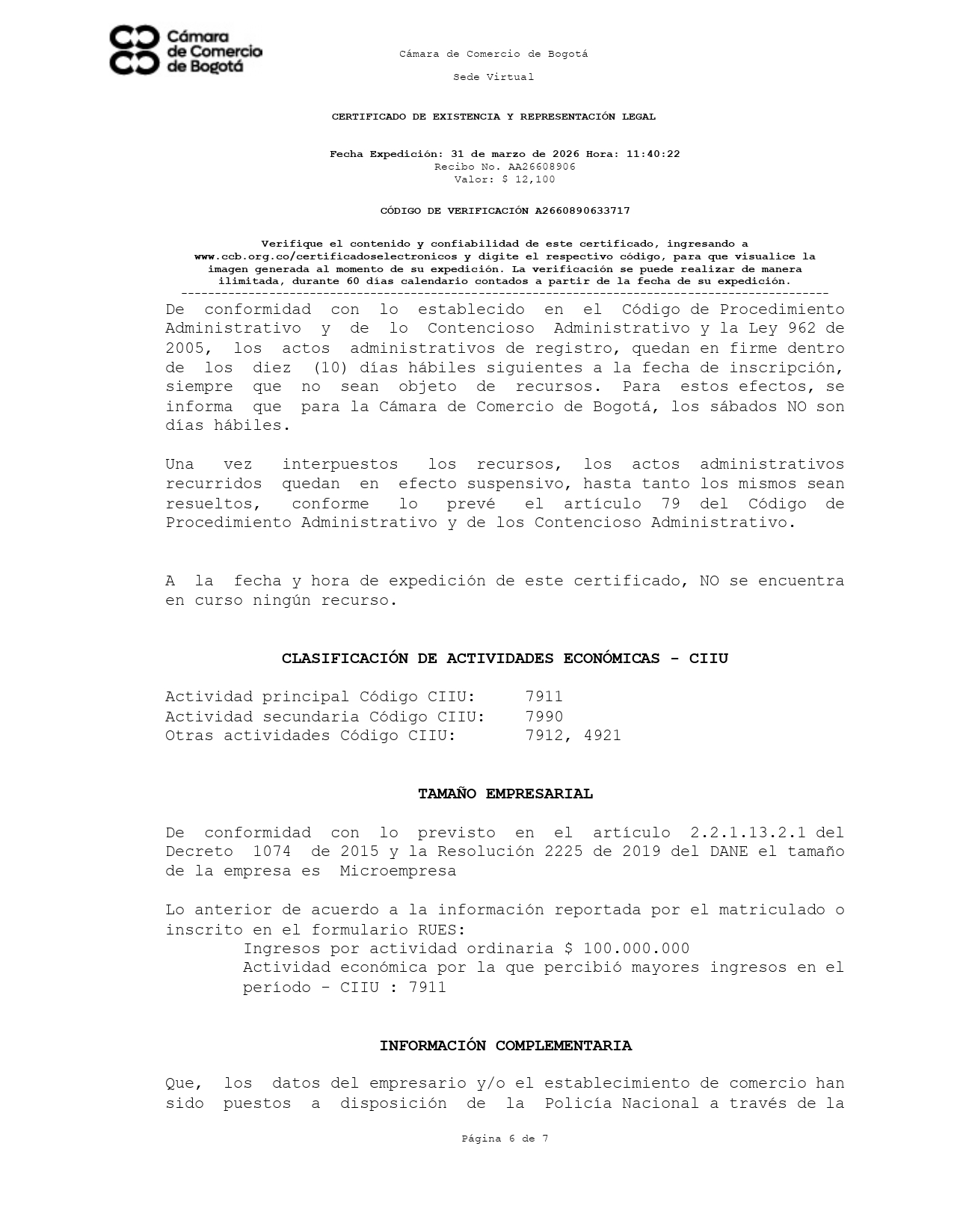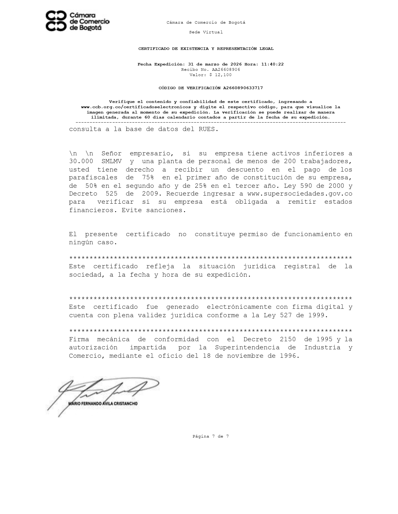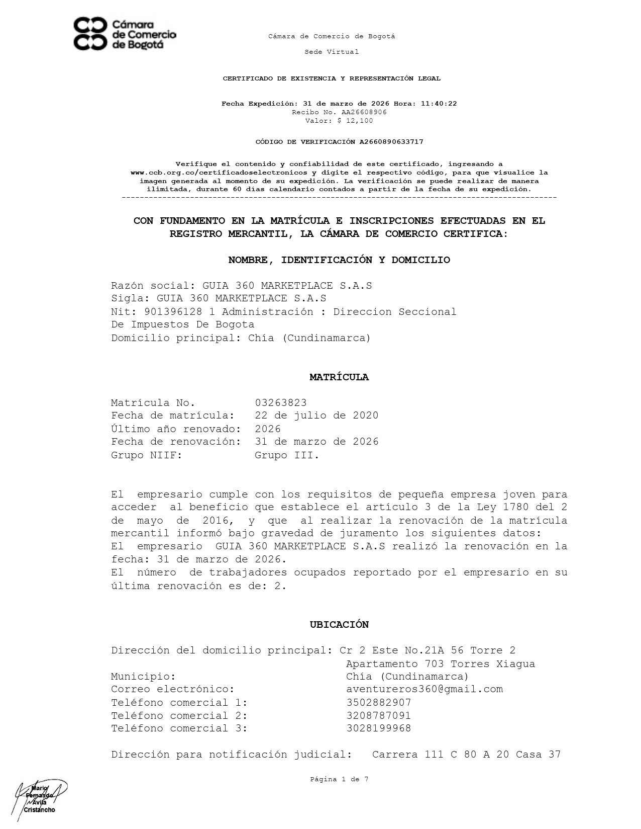 ✅ Verificado ante Cámara de Comercio