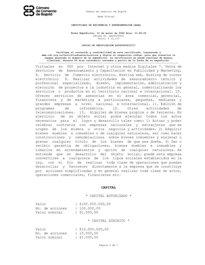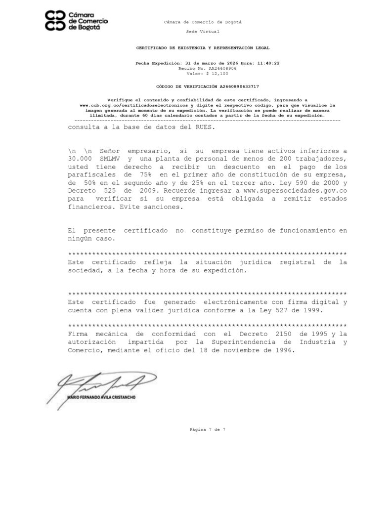 📍 Domicilio principal: Cra 111C # 80A – 20 Bogota D.C