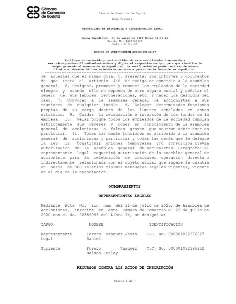 👤 Representante legal: Jhoan Daniel Forero Vásquez